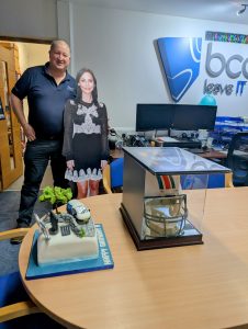 This month’s update cannot be concluded without wishing a very Happy 50th Birthday to BCC’s director Hywel. The BCC IT office teamed together to make it a memorable one. Tuesday was set to a playlist of tunes chosen for the occasion and the office was decorated with banners and balloons. We had a fabulous birthday cake, made by the very talented Kelly Still (the better half of BCC’s Sales Manager – Chris), and the whole team contributed towards a thoughtful gift. At 10:30 am, H was pitted against the rest of the staff for the morning radio pop quiz (the score was 2 rounds to nil to the staff).